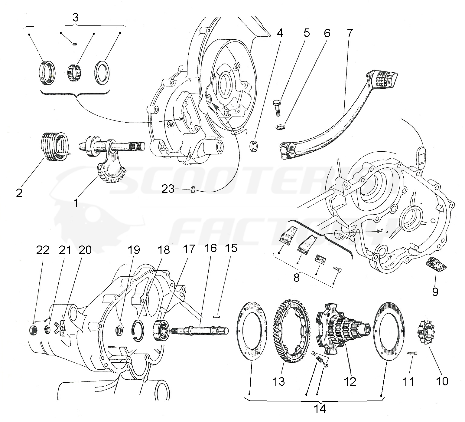 Eje pedal arranque Vespa 125/150/160 estriado total
