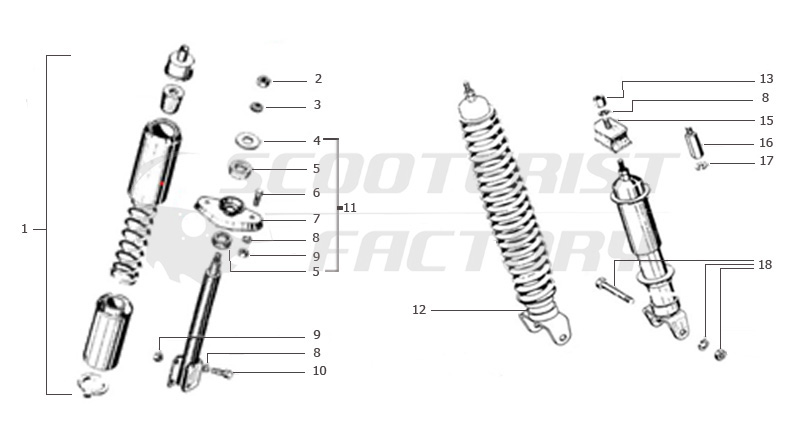 Amortiguador trasero RMS standard para PX/TX/T5/DN/DS/PRIMAVERA/SUPER
