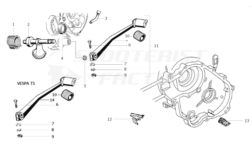 11ARRANQUE Y ELÁSTICOPalanca arranque NEGRA Vespa PX,TX,DS,DN,IRIS