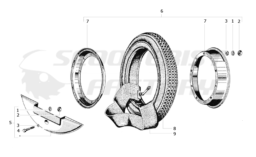 Llanta tubeless SIP Vespa conversión a 11″ aluminio pulido