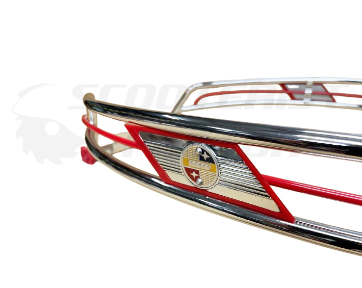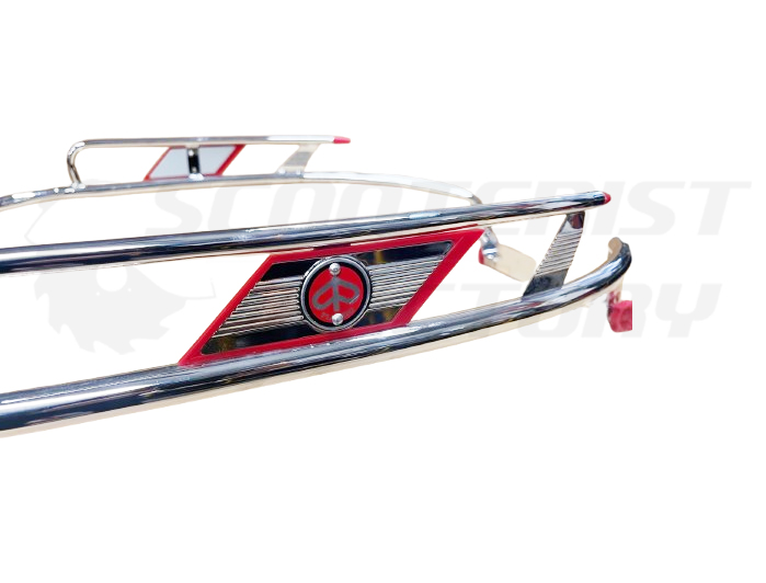 Defensa guardabarros doble Cuppini Vespa Primavera/Super cromada/rojo