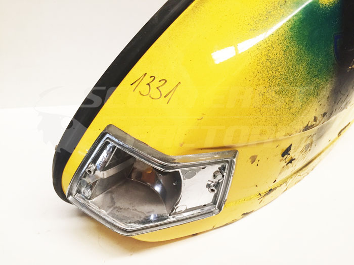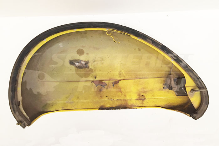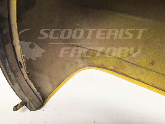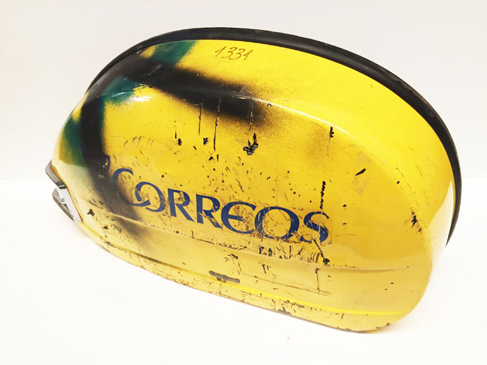 Cófano izquierdo usado Vespa PX/TX/IRIS/T5. Buen estado, sin óxidos ni fisuras, pequeñas abolladuras, se ha puesto un tornillo donde tendría que ir el anclaje trasero