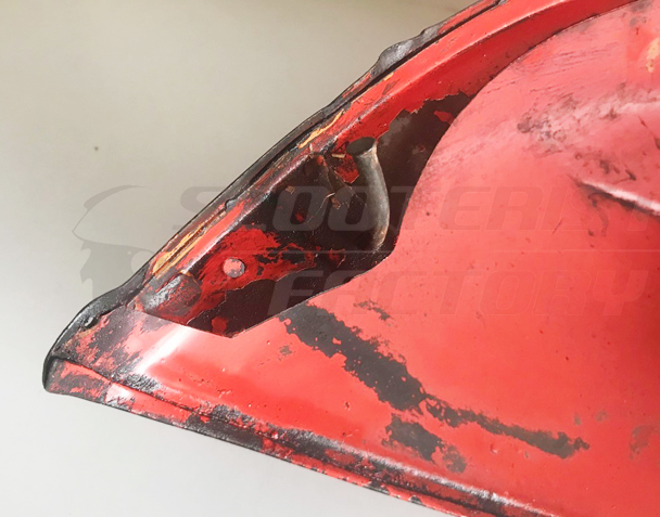 Cófano izquierdo usado Vespa Sprint/160. No tiene óxido. Algunas abolladuras y pequeñas fisuras, perfectamente reparable