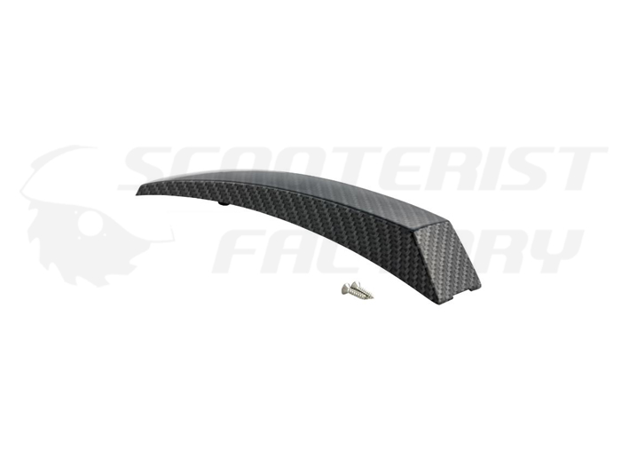 Cresta guardabarros look carbono Vespa PX-IRIS. Distancia entre agujeros 98mm. Material de sujección incluido