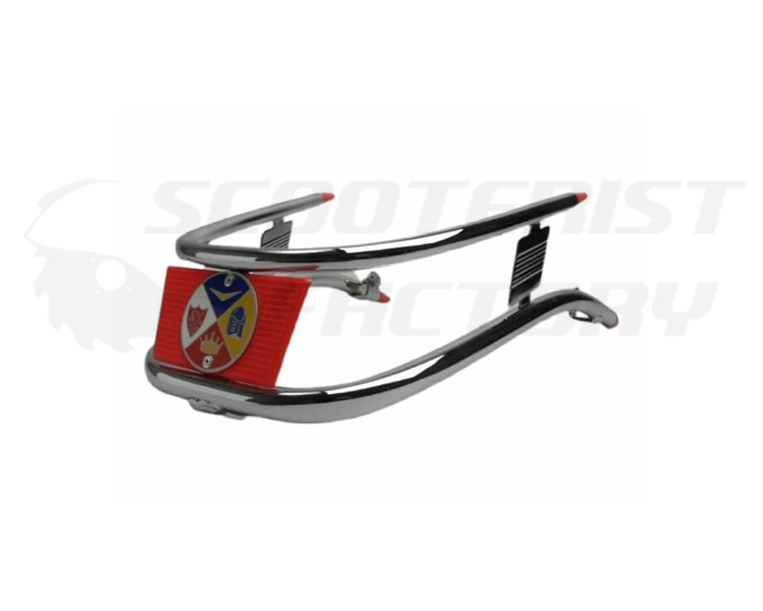 Defensa guardabarros doble Cuppini Vespa Primavera/Super cromada, logo en rojo
