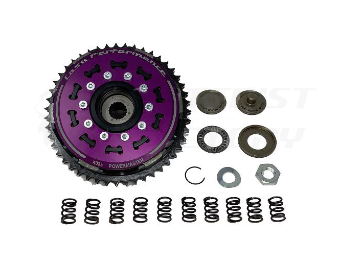 Embrague completo Casa Performance Powermaster Lambretta Series 2 y 3, 46 dientes, con 7 discos y 10 muelles. Es un embrague de tipo cassete que permite sacar el embrague sin necesidad de desmontar la corona (la llave viene incluida). Es Plug&Play no necesita modificaciones en carter para ponerlo. el embrague definitivo para motores potenciados