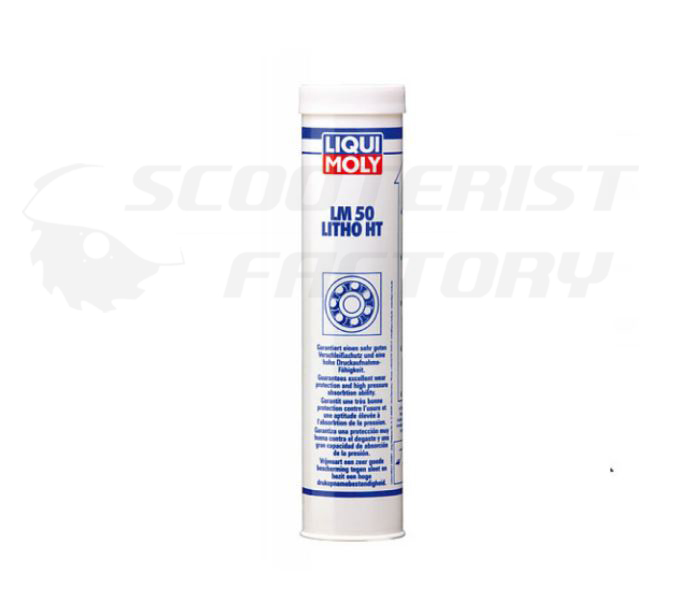 Grasa de litio para rodamientos Liqui Molly 400grs. Para la lubricación de cojinetes lisos y de rodillos que soportan cargas elevadas, como cojinetes de ruedas o rodamientos de cigüeñal de Lambretta. Temperatura de servicio: –30 °C a +140 °C. Intermitente hasta +180 °C
