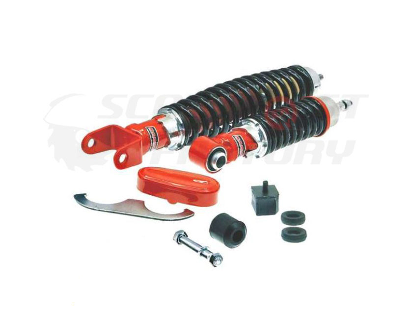 Kit amortiguación regulable Carbone Sport Vespa Primavera/Super rojo. Incluye todos los silentblocks y el embellecedor horquilla (rojo)