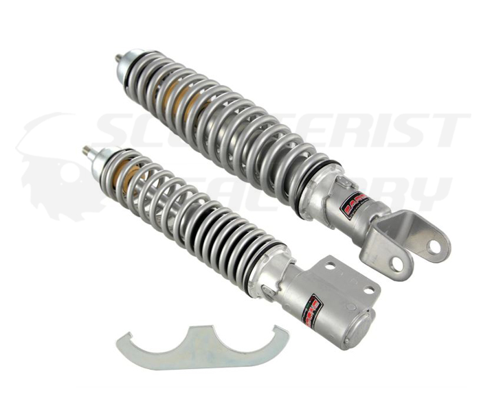 Kit amortiguación regulable Carbone Sport Vespa PX gris. Incluye todos los silentblocks