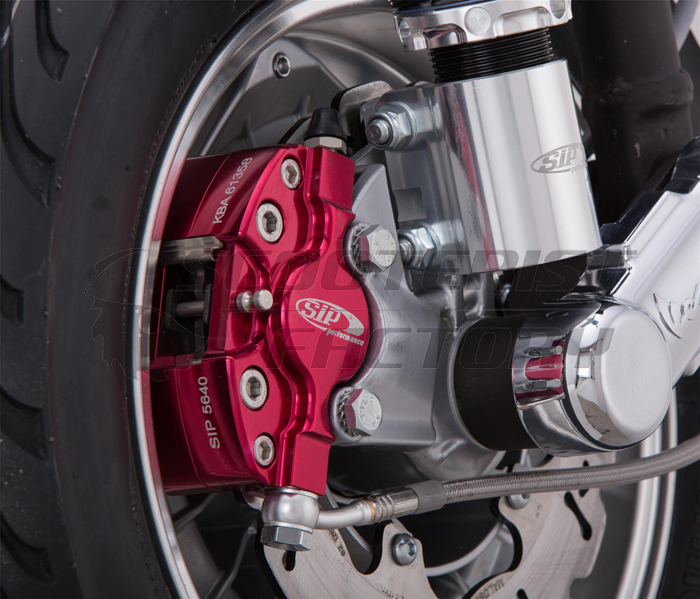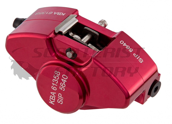 Pinza freno disco Vespa SIP anonizada roja, válida para PX disco. Con certificado de homologación alemán,